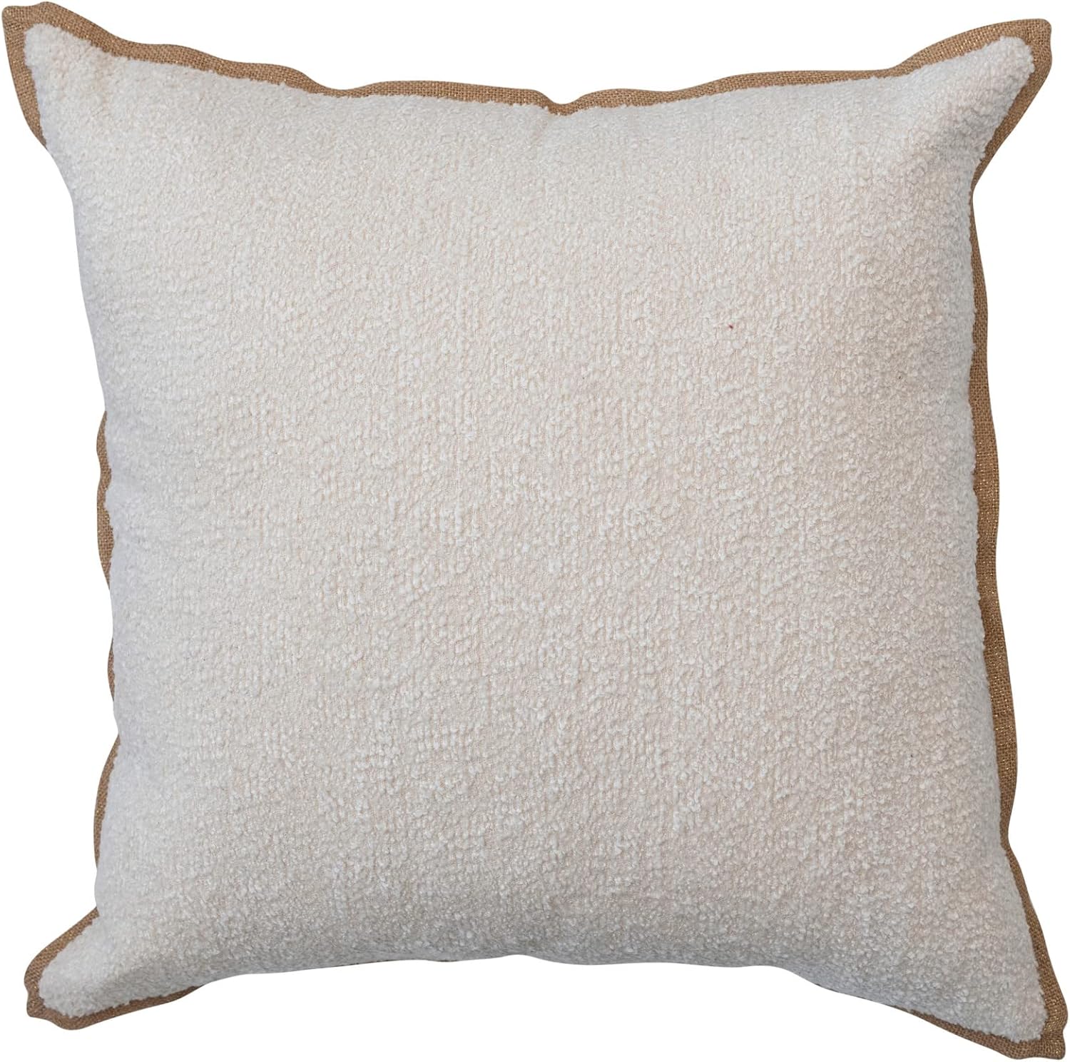 Cream Boucle Throw Pillow with Gold Accented Jute Trim