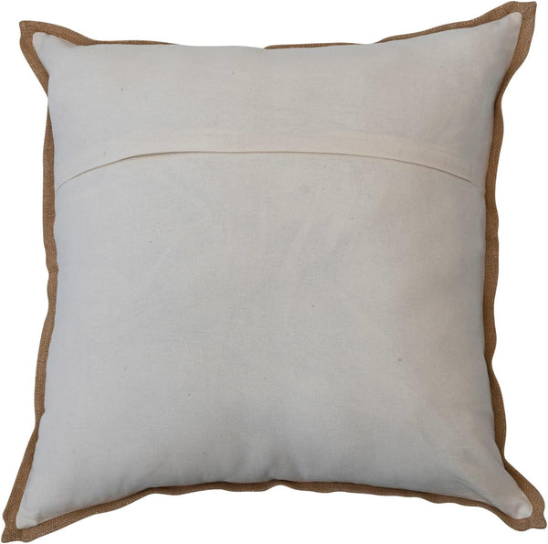 Cream Boucle Throw Pillow with Gold Accented Jute Trim, 24in.Square